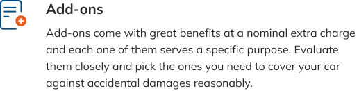 It takes just a few minutes to buy or renew car insurance online. You just have to enter the vehicle details, contact info and insured details, and pick the covers you need. Once you make the payment, you receive an instant car insurance policy.